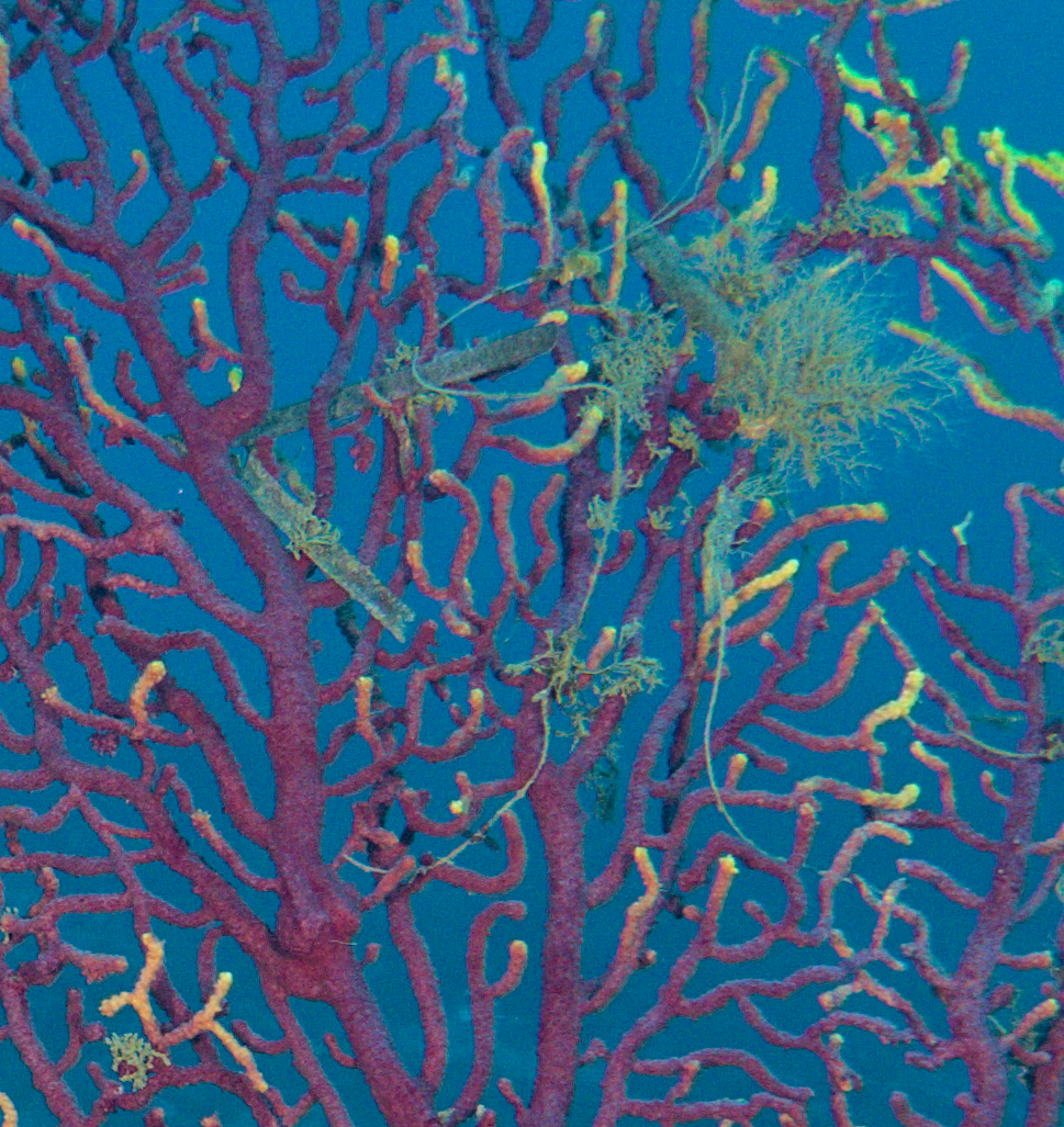 Un cop a casa, analitzant les fotos, trobem aquest fil de pescar enganxat. El fregament del fil amb el teixits de la gorgònia amb el temps li causaran ferides que li seran fatals. Aquesta imatge, com ja hem dit, ens ha fet reflexionar sobre la problemàtica molt actual